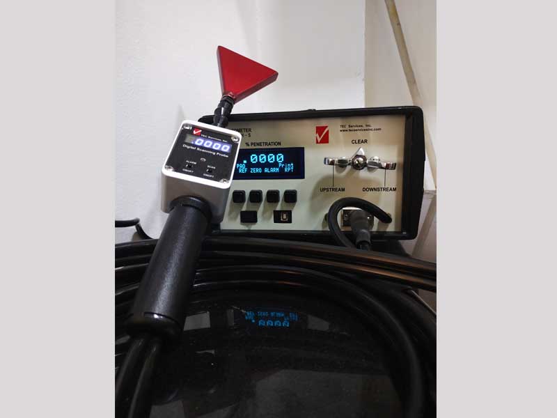 The dispersed oil particulate (DOP) scan testing, also known as filter integrity testing, or leak testing, is one of the most quoted methods by industry standards. The test is recommended to be repeated at regular time intervals to verify the continued efficiency of the filter. During the test, the filter is challenged by introducing particulates and measuring the output.